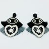 ARETE CORAZÓN CON OJO TURCO BORDADO A MANO CON TÉCNICA DE SAN ANTONINO CASTILLO VELASCO, OAXACA CON POMPÓN MULTICOLOR.