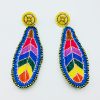 ARETES DE PIÑA BORDADOS A MANO TÉCNICA DE JALAPA DE DÍAZ, OAXACA Y ESCOBILLA DE ABANICO, ACABADOS METÁLICOS DE BISUTERÍA.