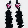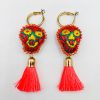 ARETES DECATRINAS BORDADOS A MANO CON TÉCNICA DE SAN ANTONINO CASTILLO VELASCO, OAXACA Y ESCOBILLA EN FORMA DE ABANICO DE RAFIA