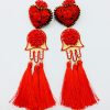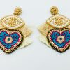 ARETE CORAZÓN CON OJO TURCO BORDADO A MANO CON TÉCNICA DE SAN ANTONINO CASTILLO VELASCO, OAXACA CON POMPÓN MULTICOLOR.