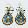 ARETES DE PIÑA BORDADOS A MANO TÉCNICA DE JALAPA DE DÍAZ, OAXACA Y ESCOBILLA DE ABANICO, ACABADOS METÁLICOS DE BISUTERÍA.