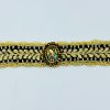 BRAZALETE BICOLOR BORDADA A MANO, MEDALLA DE FLOR Y BROCHE DE BOTÓN CON ELASTICO. TÉCNICA DE SAN ANTONINO CASTILLO VELASCO, OAXACA.