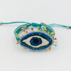 PULSERA BORDADA A MANO CON TÉCNICA DE SAN ANTONINO CASTILLO VELASCO, OAXACA CON DIJE DE CALAVERA DE PLATA.