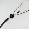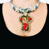 COLLAR LARGO CON CADENA TEXTIL BORDADO A MANO CON TÉCNICA DE SAN ANTONINO CASTILLO VELASCO, OAXACA Y DIJE DE CRISTALES Y ESCOBILLAS.