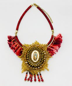 COLLAR CON MEDALLA DE LA VIRGEN DE GUADALUPE CON ESCOBILLAS DE HILO.