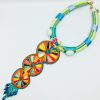 COLLAR LARGO CON CADENA TEXTIL BORDADO A MANO CON TÉCNICA DE SAN ANTONINO CASTILLO VELASCO, OAXACA Y DIJE DE CRISTALES Y ESCOBILLAS.
